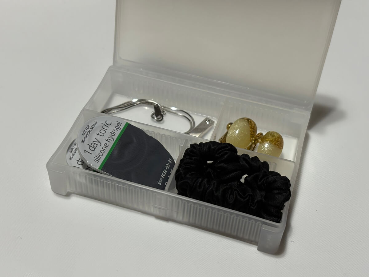 コンタクトや小さめのアクセサリーなどが入るケースは、パッキングの際に大活躍。