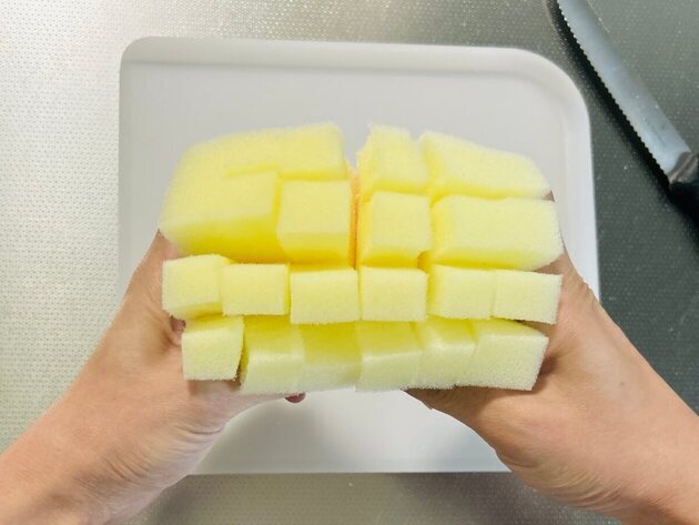 食器用スポンジの裏ワザ「マンゴーカット」が最強