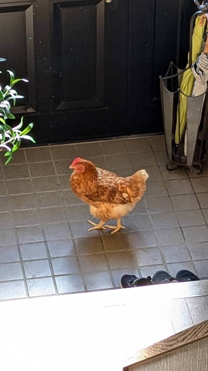 しかも、全く物怖じせず、ズカズカと玄関に入ってきたのです。(後で調べたところ、どうやら「シャモ」のようでした。)平和な住宅街に現れた、まさかの珍客に驚くばかり。