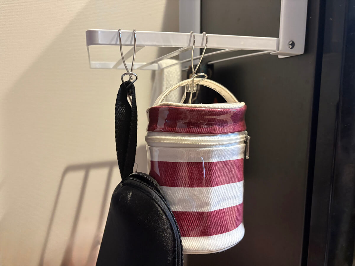 ワイヤークリップは、バーに引っ掛けるだけで収納スペースとして活用できる万能アイテムです。