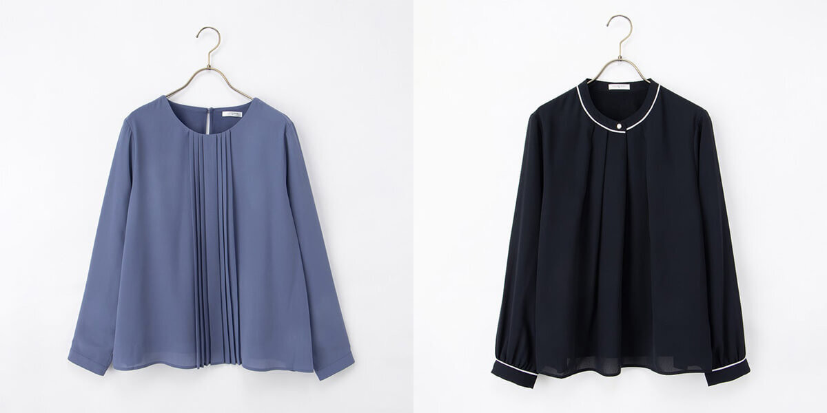 ▲あったか裏地プリーツブラウス¥2,980(税込)、あったか裏地配色ブラウス¥2,980(税込)