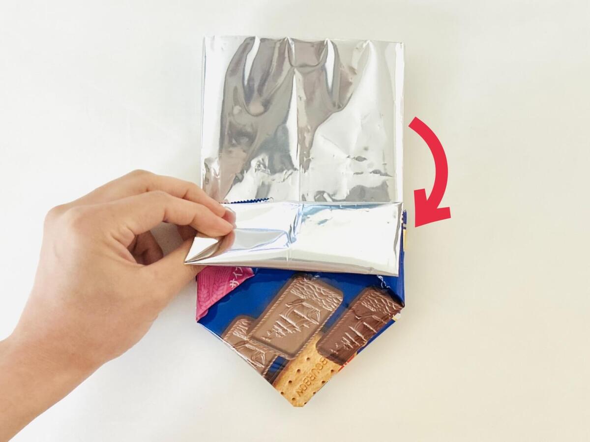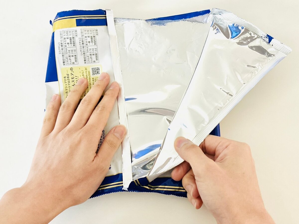 ※使用するのは、あくまでも個包装されているお菓子の大袋。ポテトチップスなど、お菓子がそのまま入って内側が汚れている大袋は使えませんのでご注意ください。