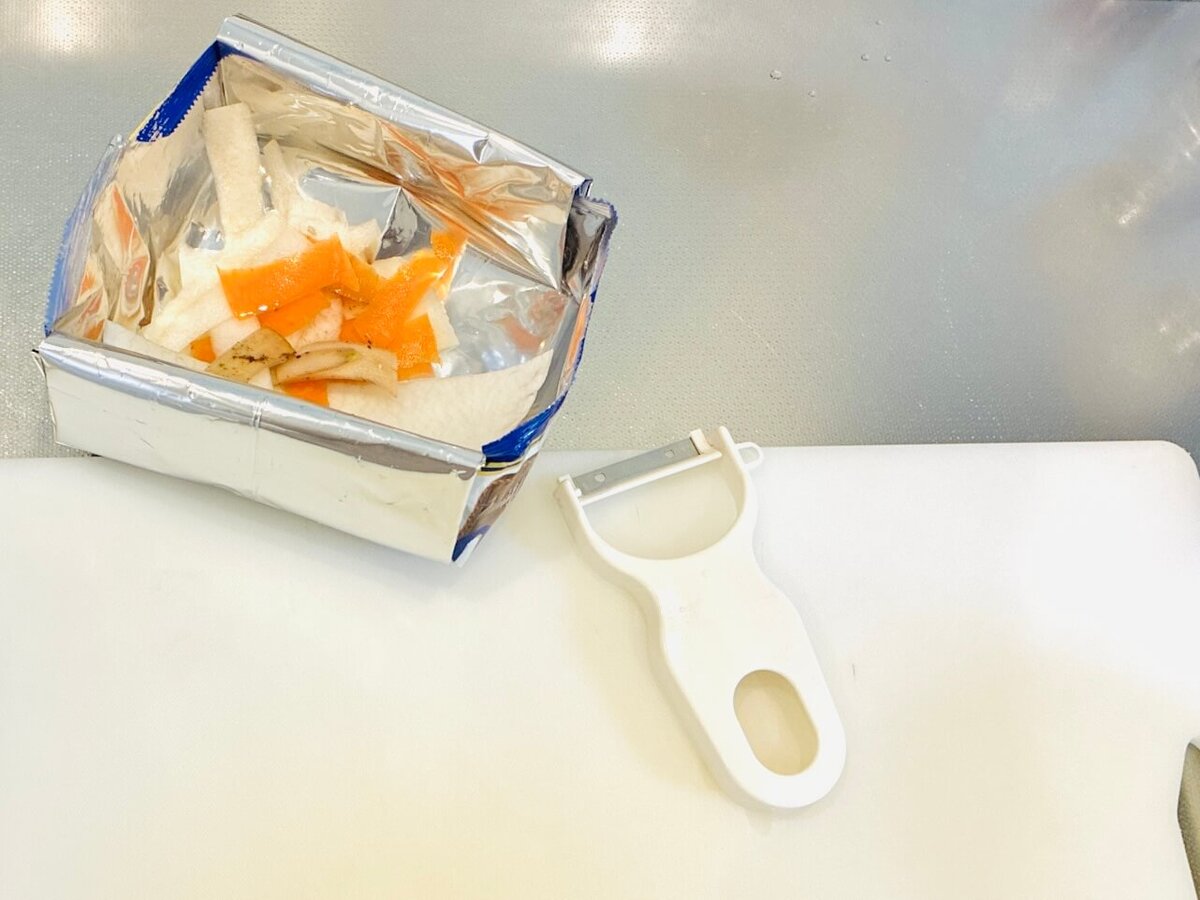 このままゴミ袋として使う方法もありますが、我が家ではもうひとひねり。さらに使い勝手をよくしちゃいます。