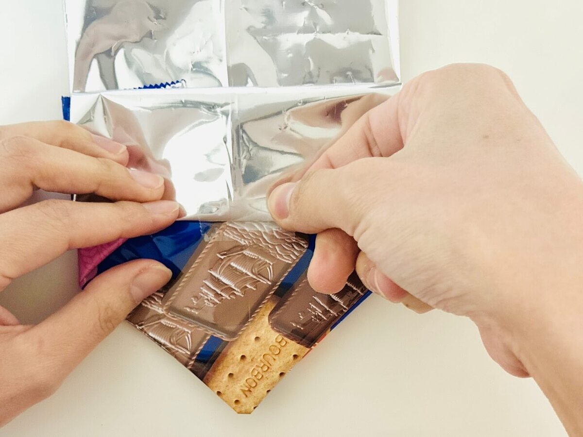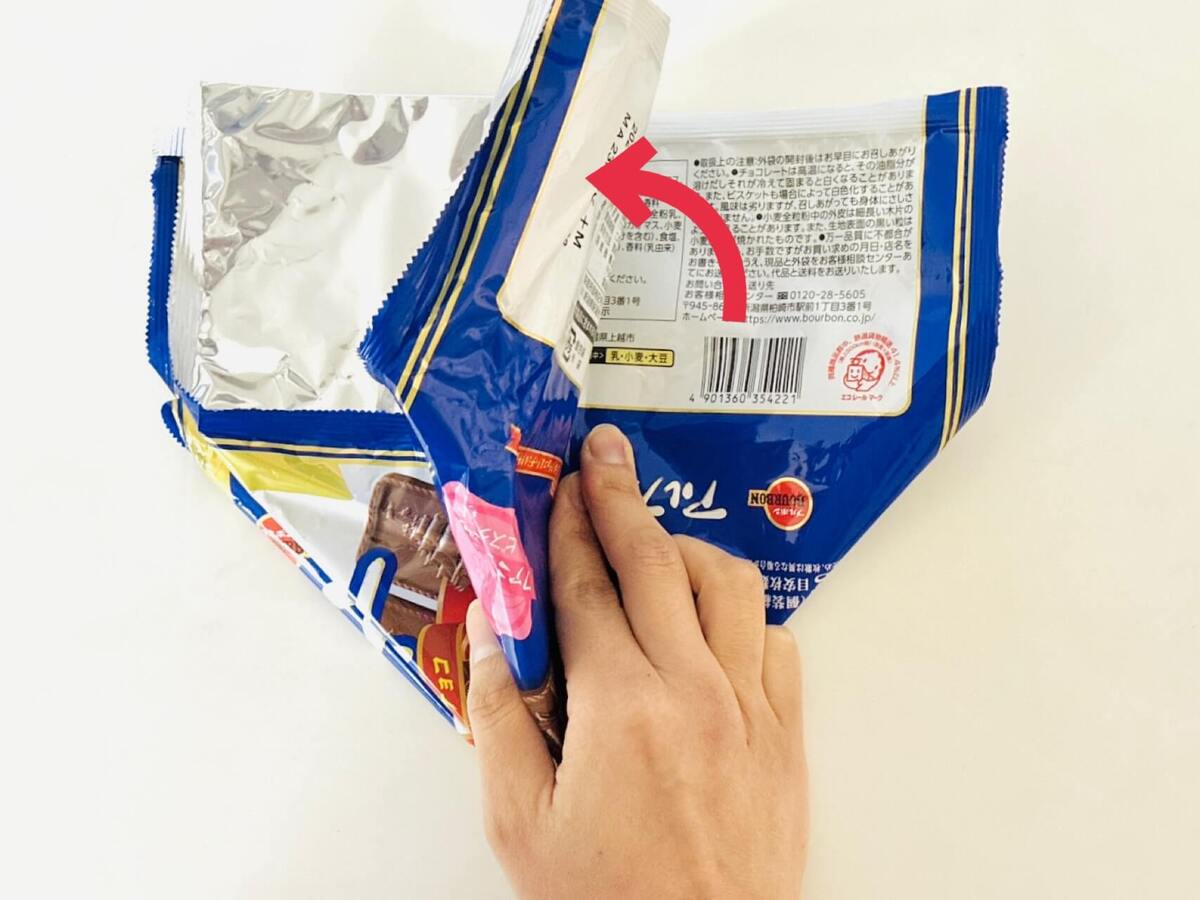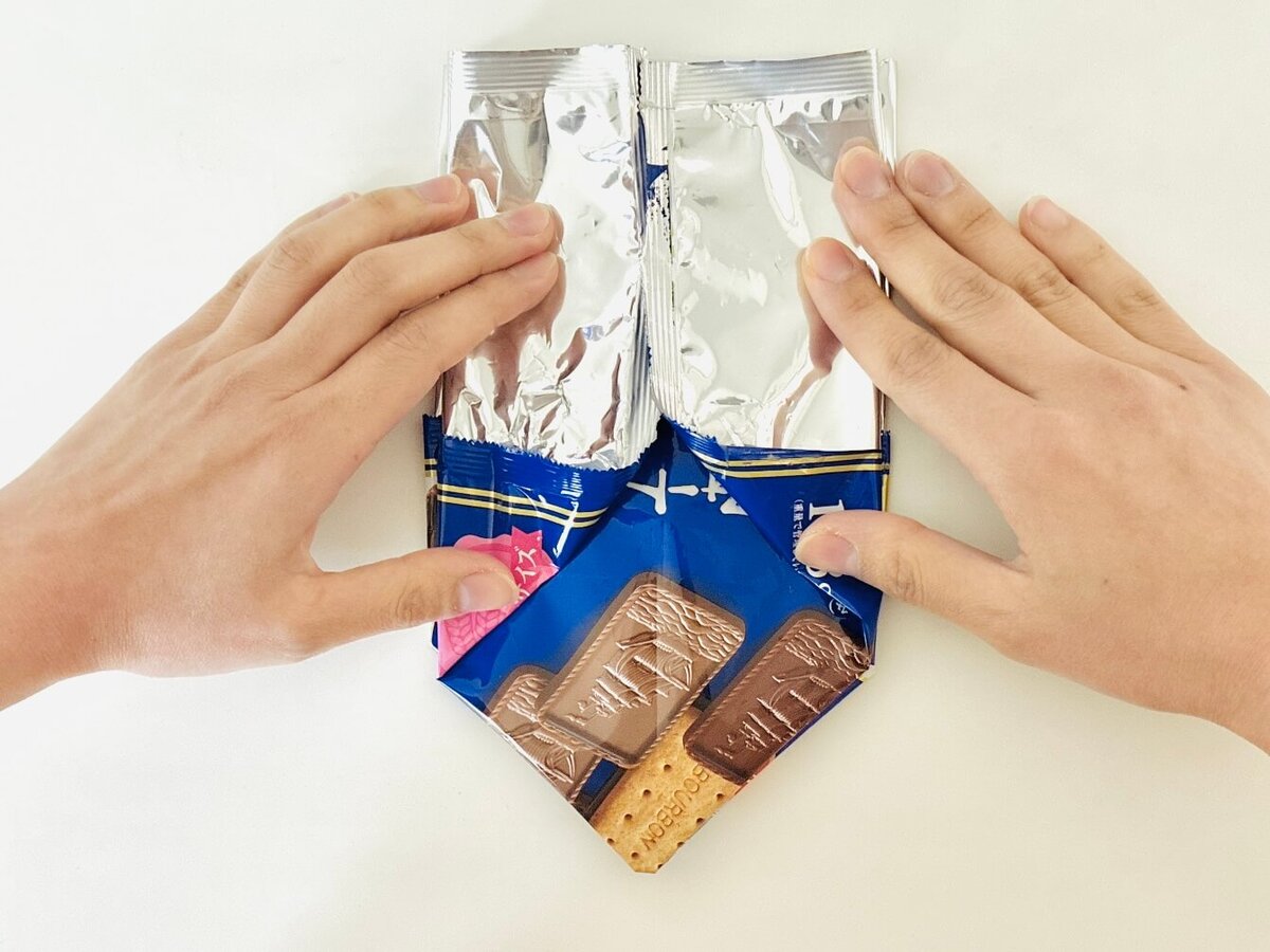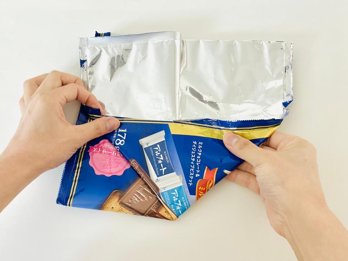お菓子の大袋は、このように簡単に手で開くことができます。