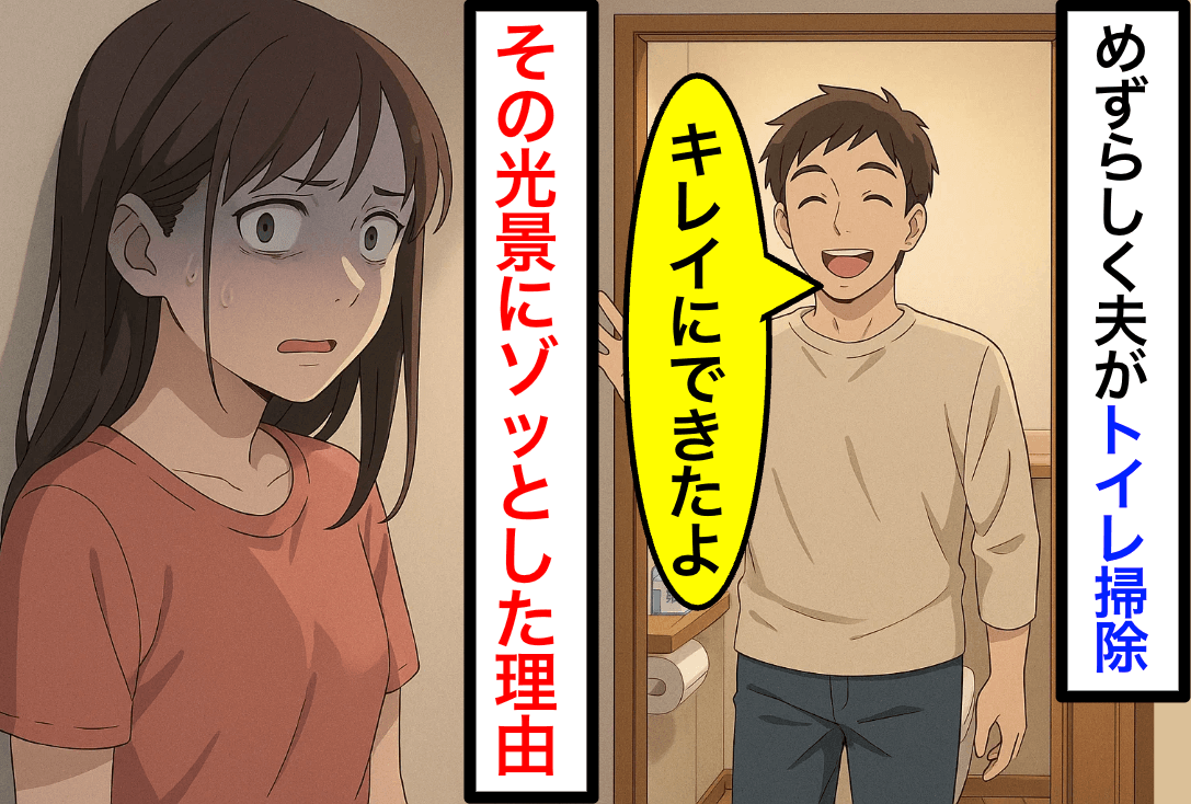 嬉しいことに、夫が珍しくトイレ掃除をしておいてくれたのですが……。ある違和感から、ゾッとする出来事に気づいてしまったのだそうです。