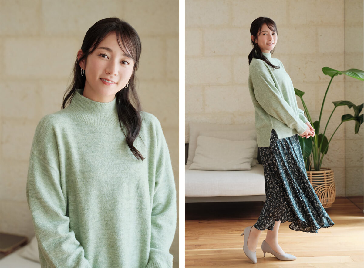 等身大に着られて、少しだけきれいめ。木村文乃さんが纏うハニーズの冬の新作は、凜とした佇まいにやわらかな温もりを重ねたスタイルです。