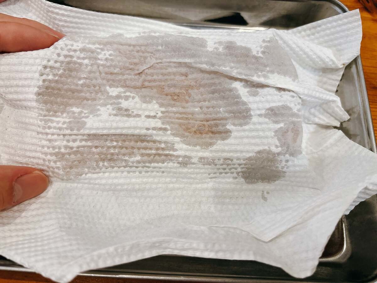 まぐろを取り出し、キッチンペーパーなどでしっかり水気をとります。