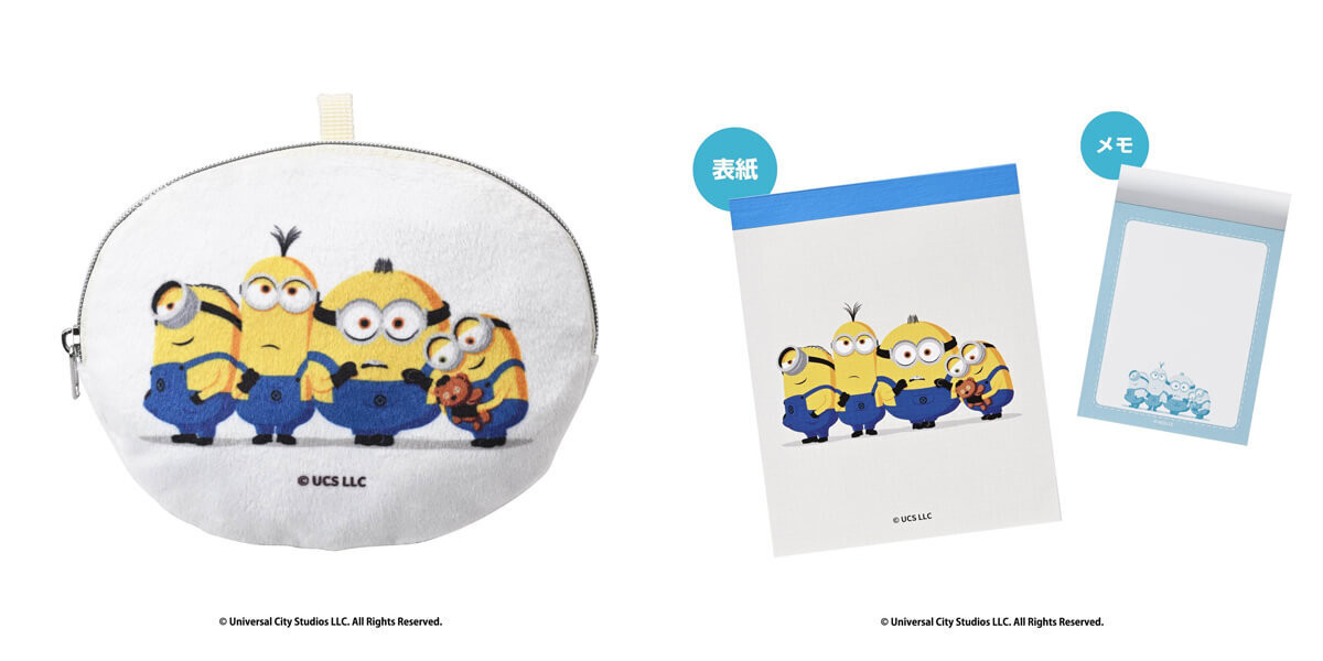 ぎゅっと密着するミニオンたちの姿がキュート!日常使いしやすいシンプルなポーチとメモ帳