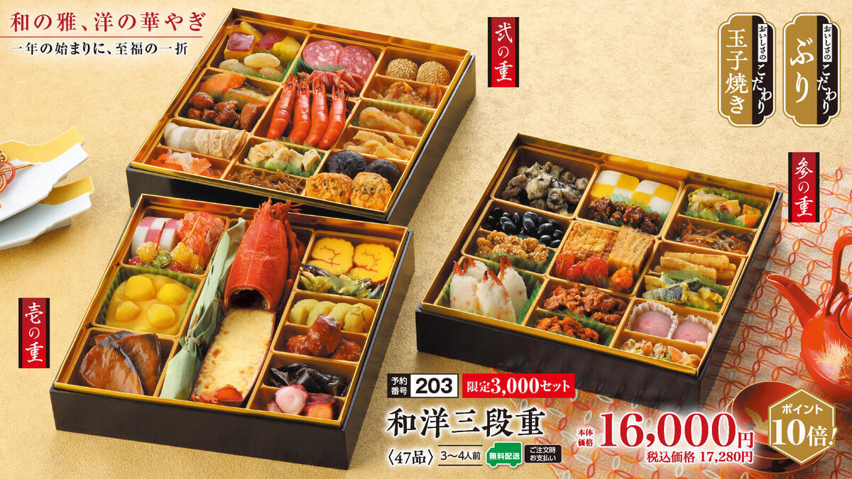 店舗によって予約可能な商品は異なりますが、配送おせちは全国どこでも送料無料なのがうれしいポイント。