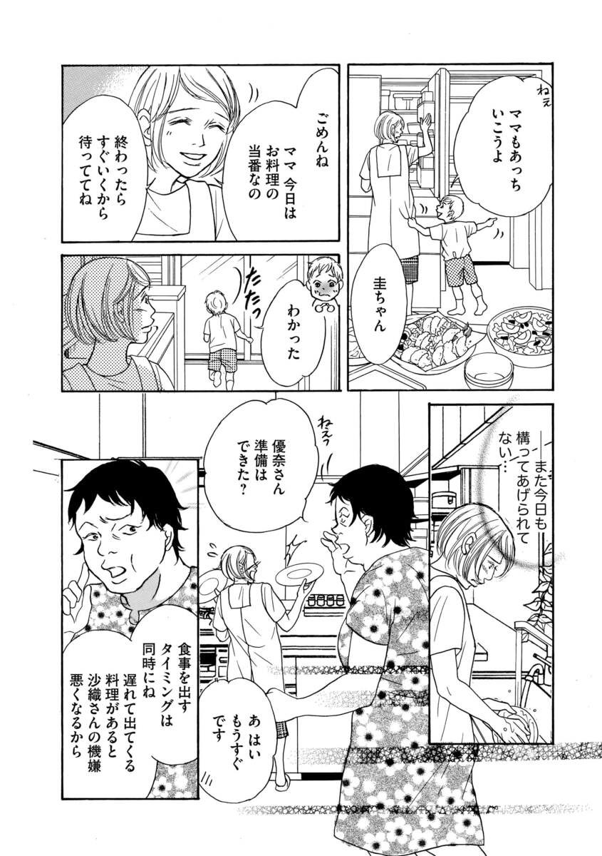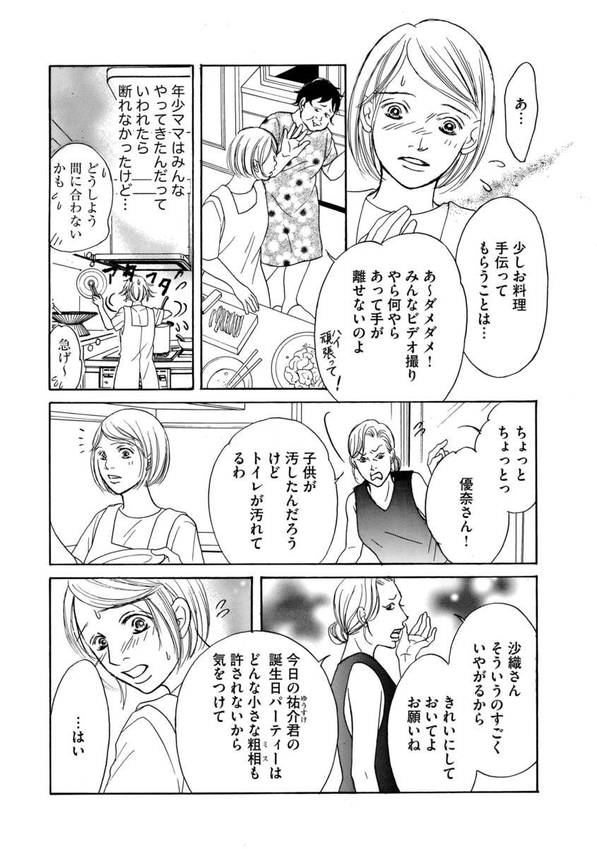 中でも夫が県議会議員の沙織はママ友グループのボス的存在で、特に優奈につらく当たる日々。