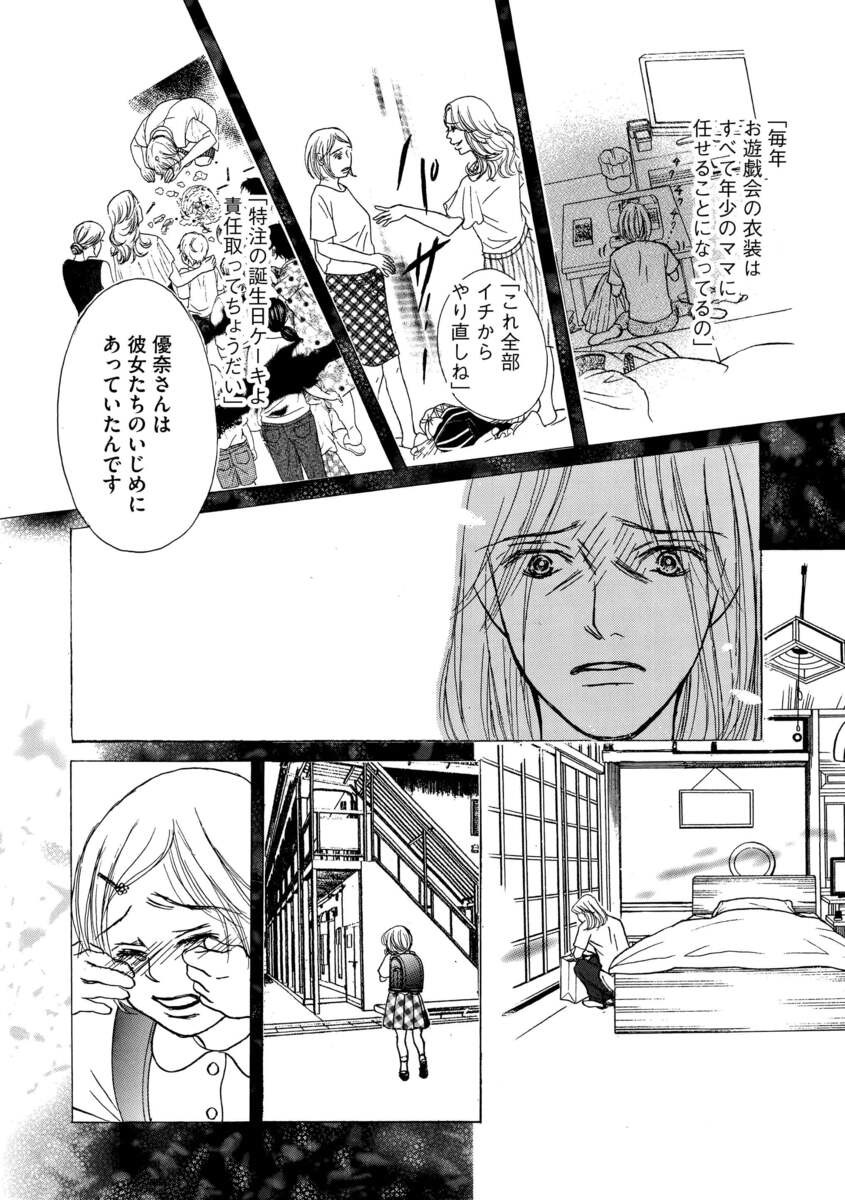 中でも夫が県議会議員の沙織はママ友グループのボス的存在で、特に優奈につらく当たる日々。