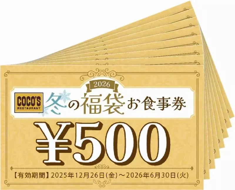全国のココスで、お受け取り後すぐに使える「ココス 冬の福袋お食事券」です。