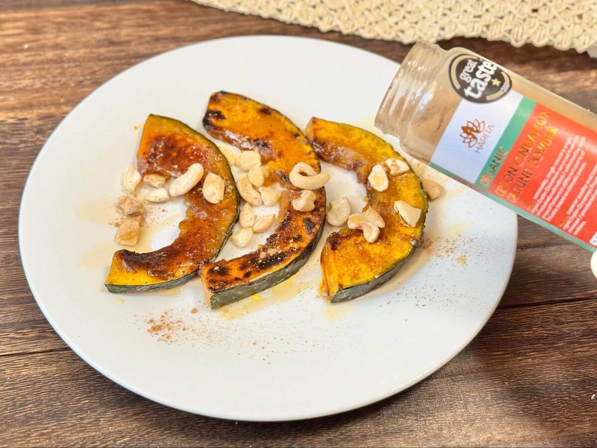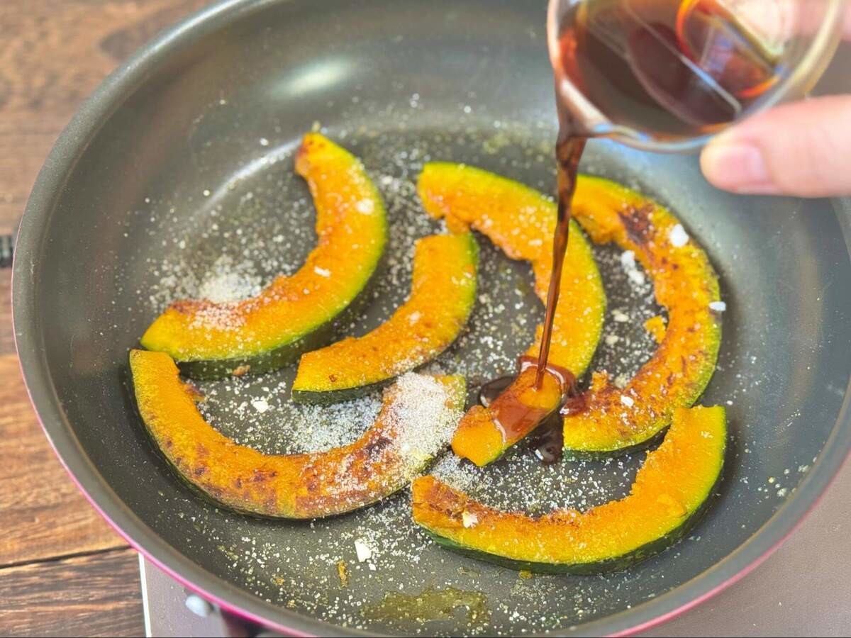 バルサミコ酢の甘酸っぱい風味が華やかなアクセントになり、味の奥行きを広げています。いつものかぼちゃが、少し遠くに行ってしまったように感じるのは気のせいでしょうか。