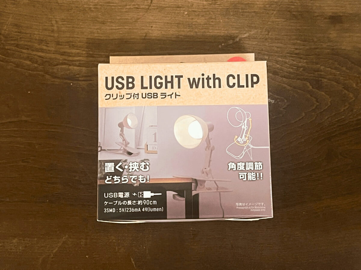 次のダイソーのお仕事まわりの便利アイテムは、「クリップ付USBライト」です。