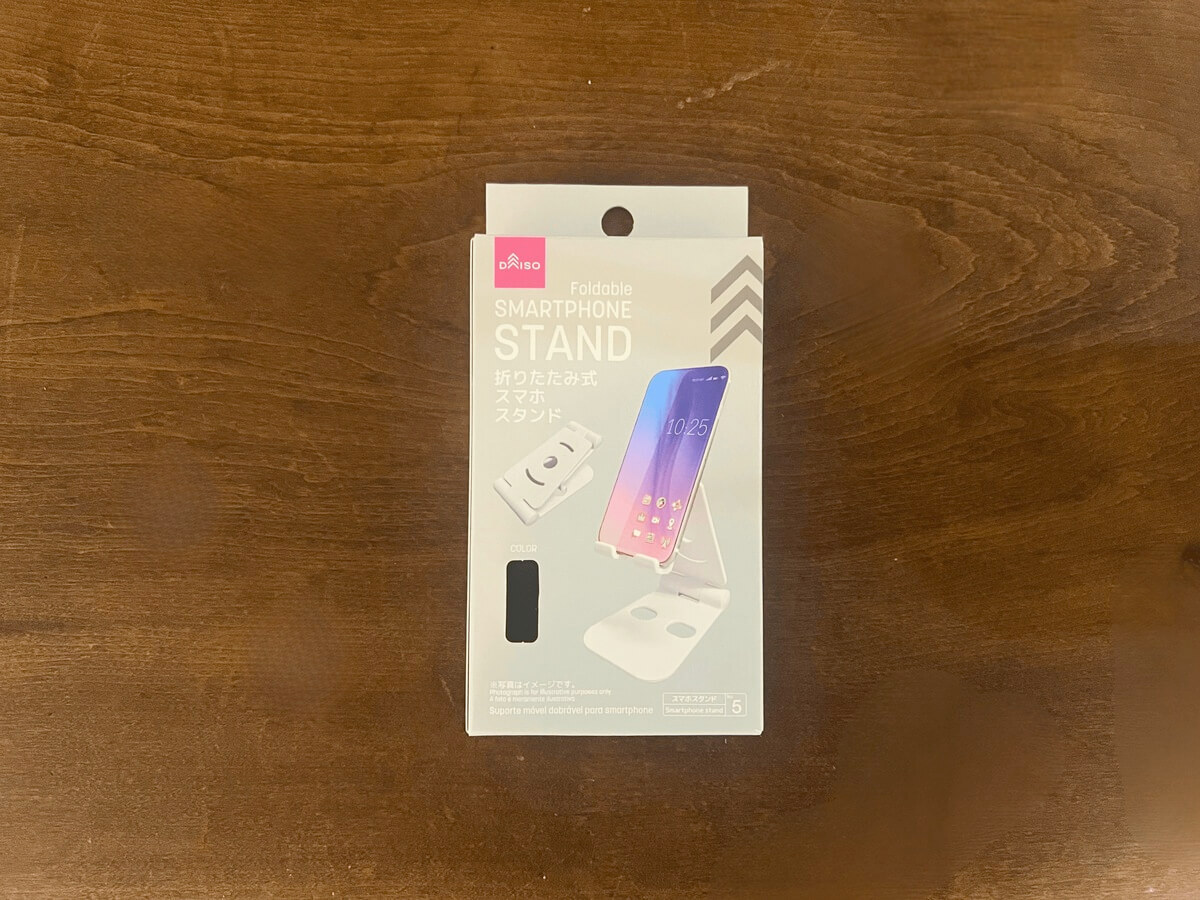 最後にご紹介するダイソーのアイテムは、「折りたたみ式スマホスタンド」です。