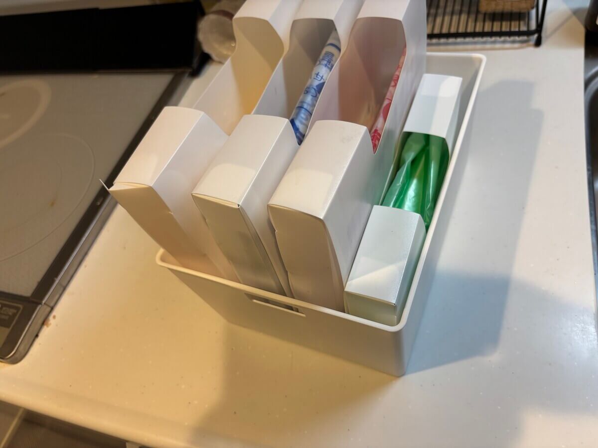 そこでおすすめなのが消耗品収納ケースです。収納ケースと収納用の箱を組み合わせることで見た目もスッキリとでき、消耗品の整理がしやすくなります。