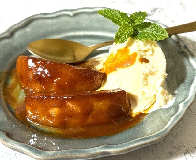 甘いバニラアイスにキャラメル煮は最高に合います。温かいままでも冷やしてからでも美味しかったです。