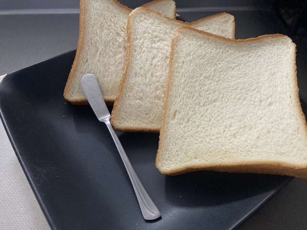 見た目は、いつものバタートーストよりも明るいきつね色で美味しそうです。