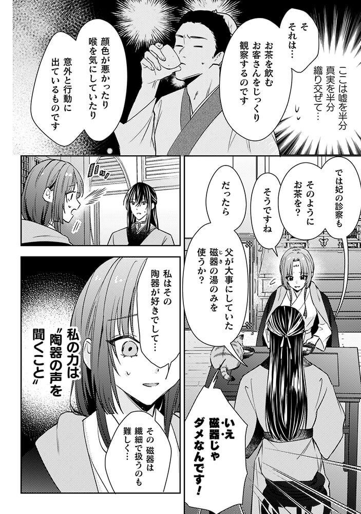 食堂を営み、陶器の声が聴ける力で人々の体調不良を見抜きながら、料理を振舞って順調に徳を高めていた。