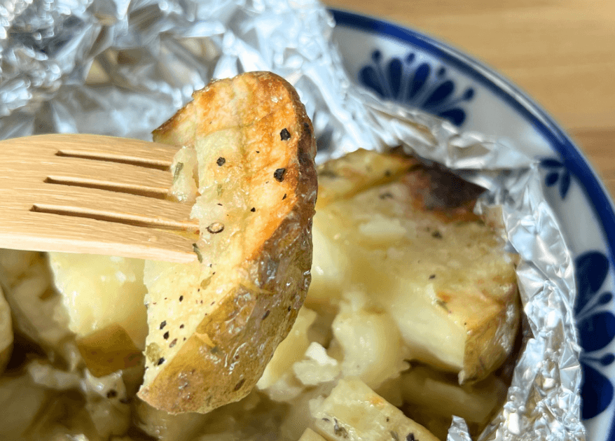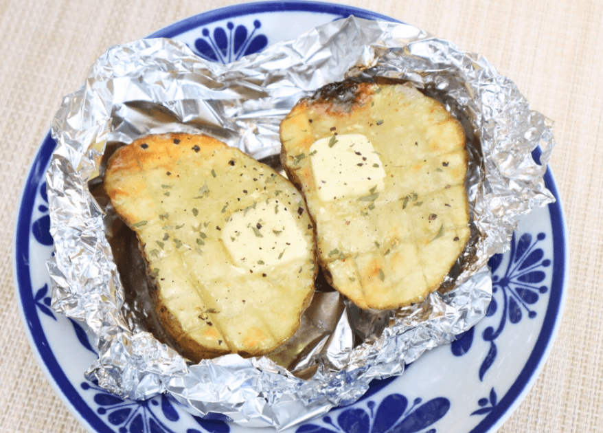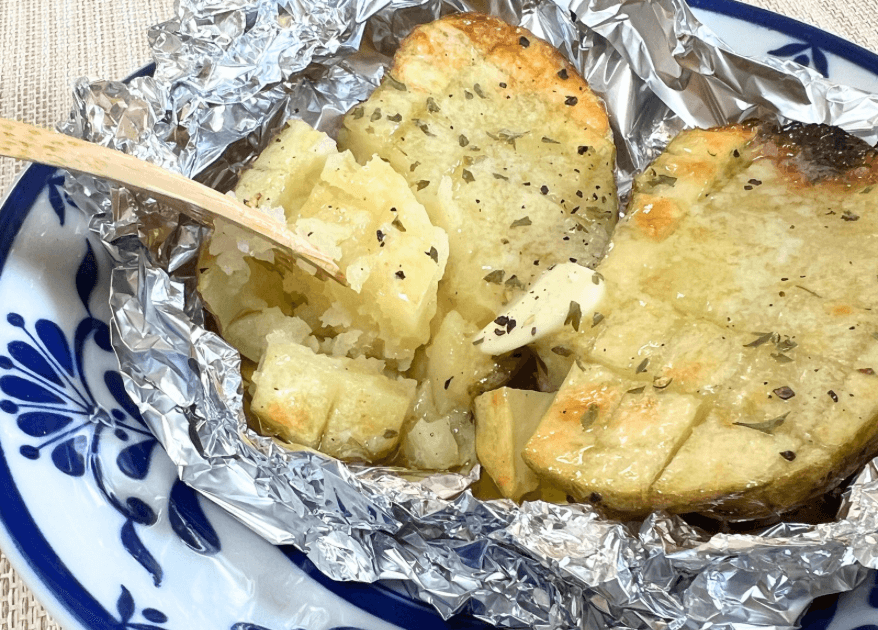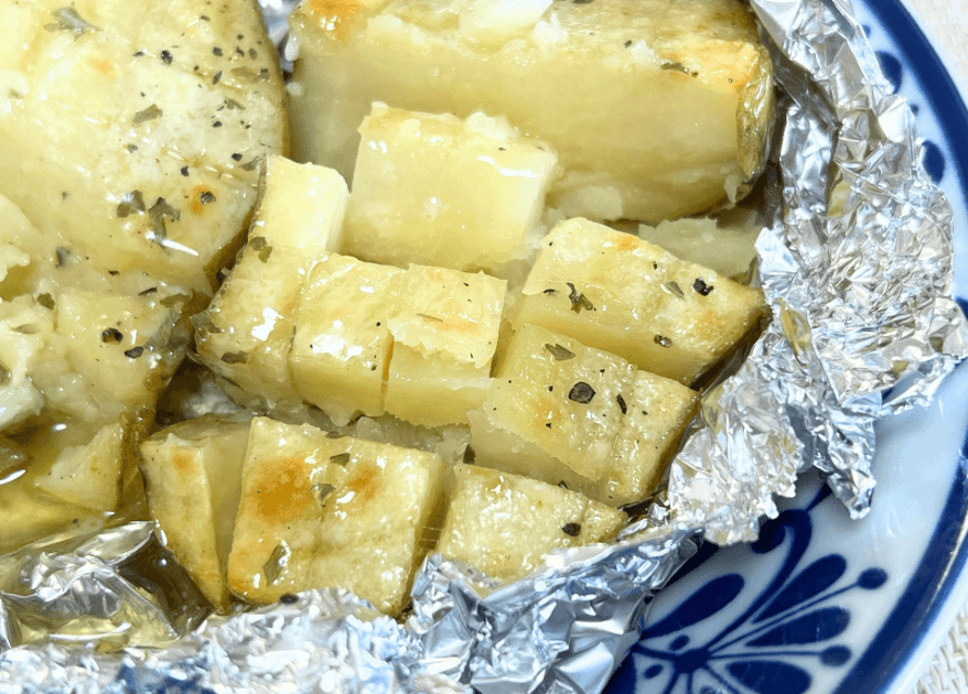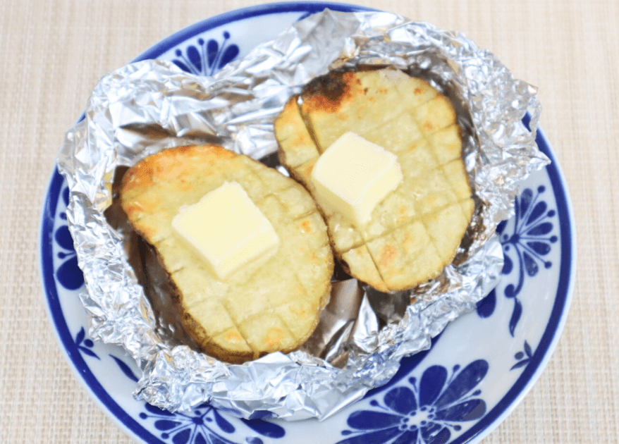 表面全てに切り込みを入れたことで、バターがじゃがいものどの部分にも染み込んでいます!