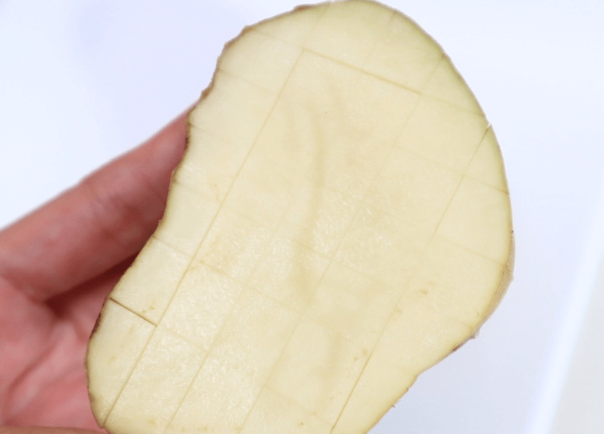 作り方① じゃがいもは洗って格子状に切り込みを入れる