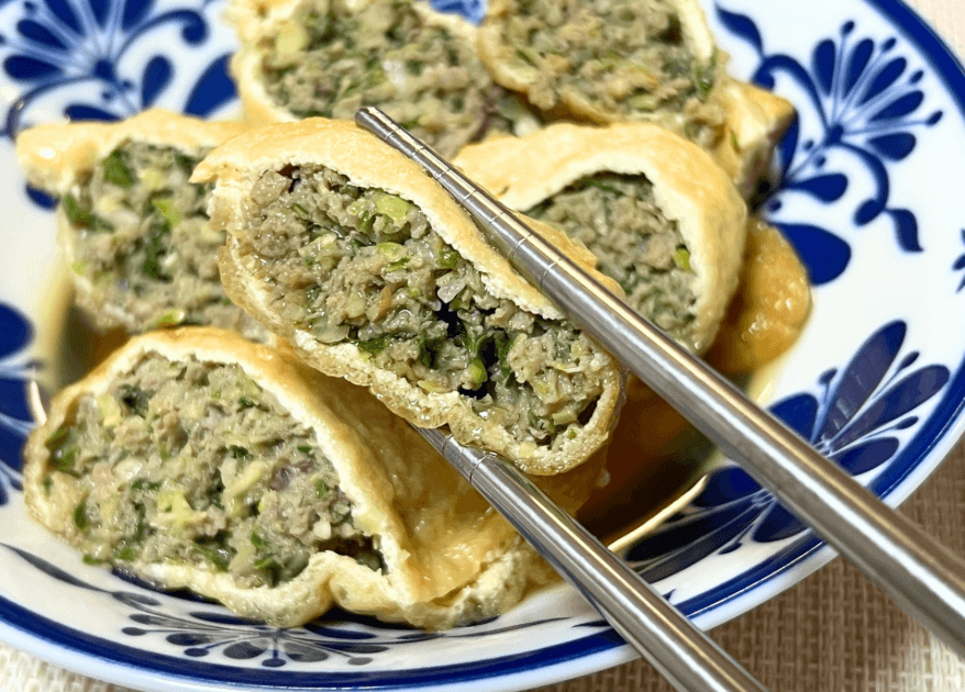 詰めて煮るだけ!「油揚げジューシー餃子」のレシピ