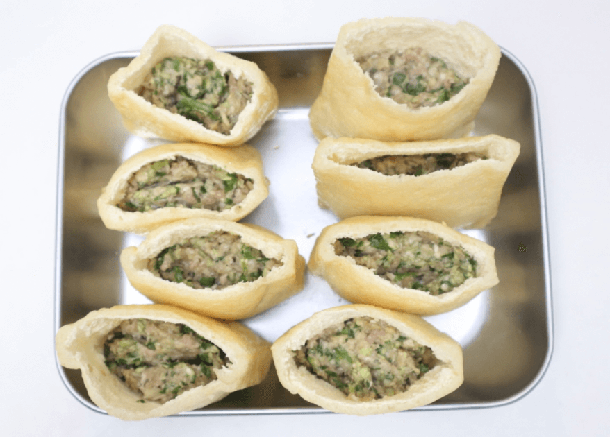 作り方③油揚げにタネを詰める