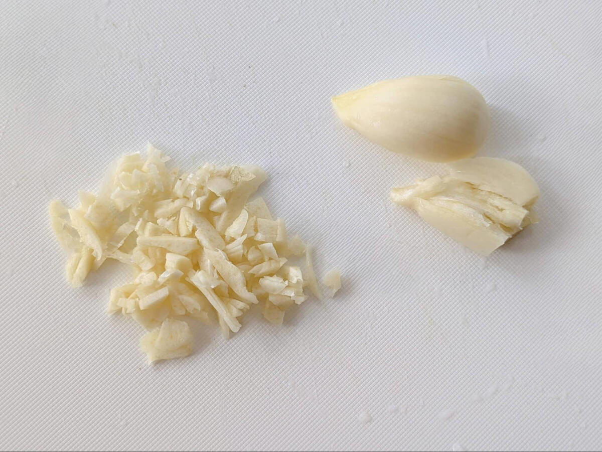 ニンニクをつぶして芯を取り、粗みじん切りにします。