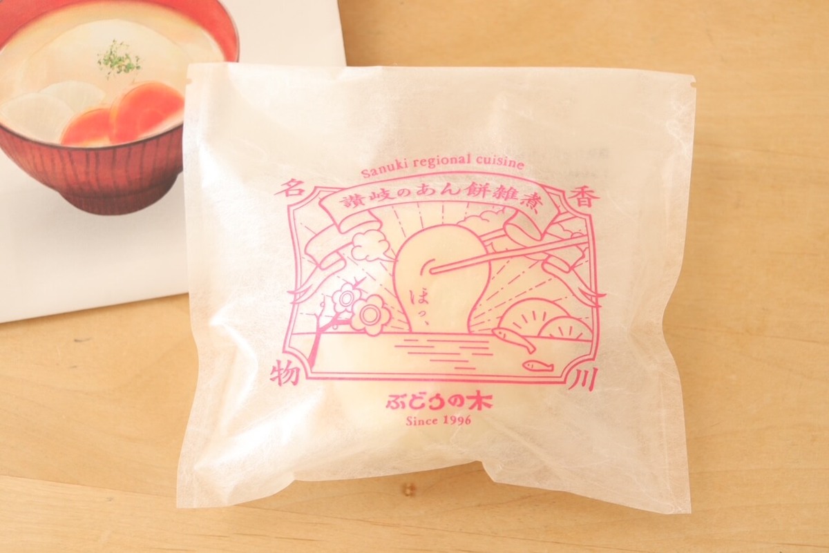 お持ち帰り用のあんもち雑煮のパッケージはこちら。「香川名物」の文字が入っており、贈り物にもぴったりなデザインです。