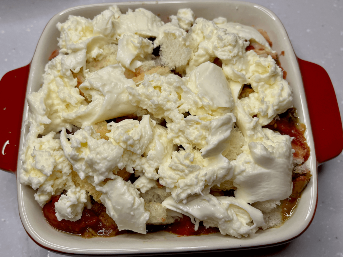 最後にモッツアレラをほぐしながら全体にちらし……。