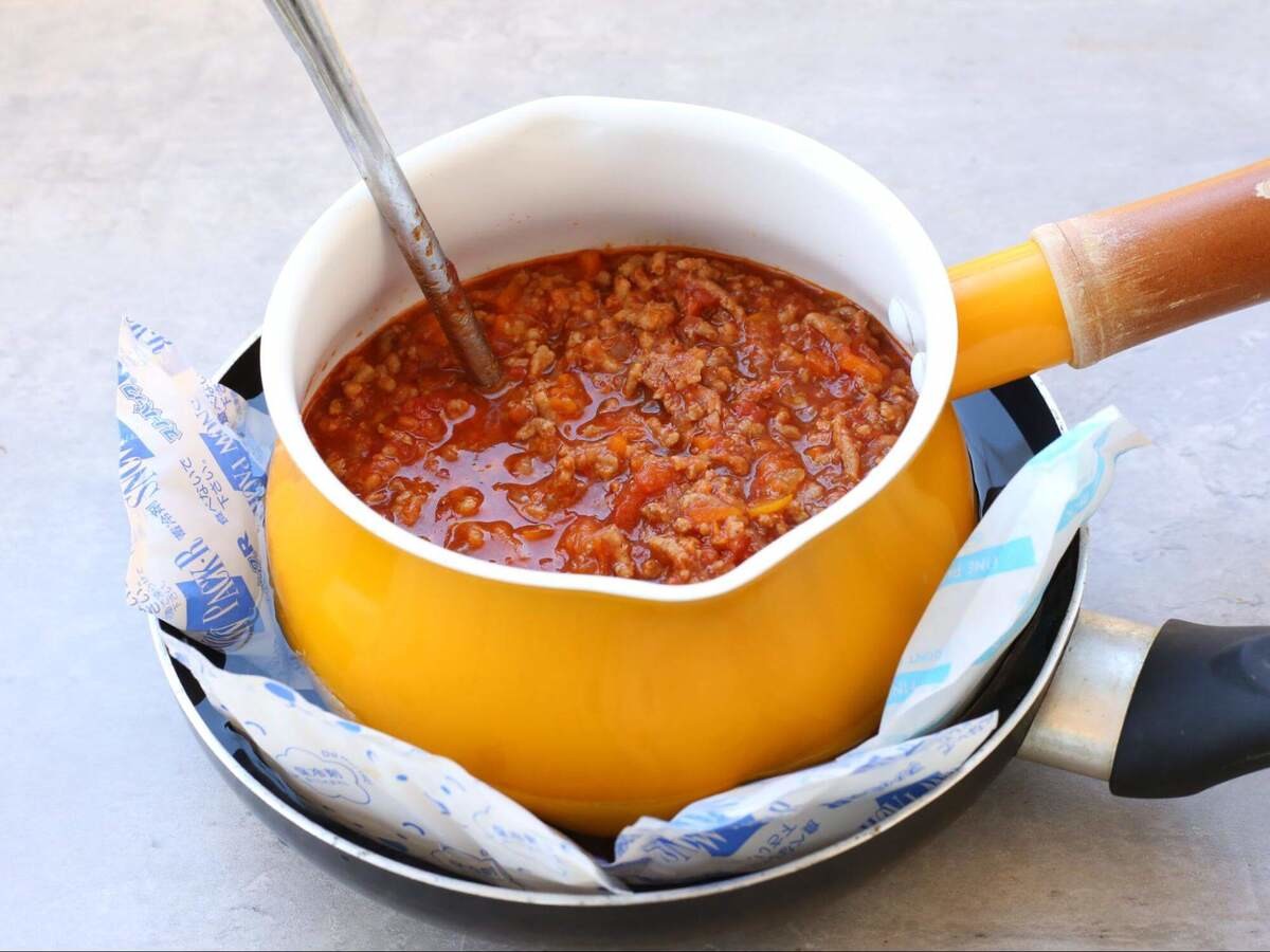 ミートソースを保存するときは長時間常温に置かず、急いで冷ますのが鉄則!