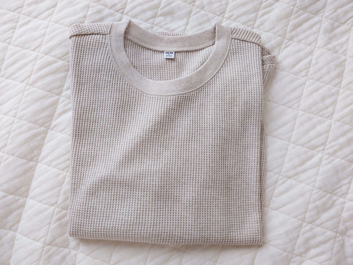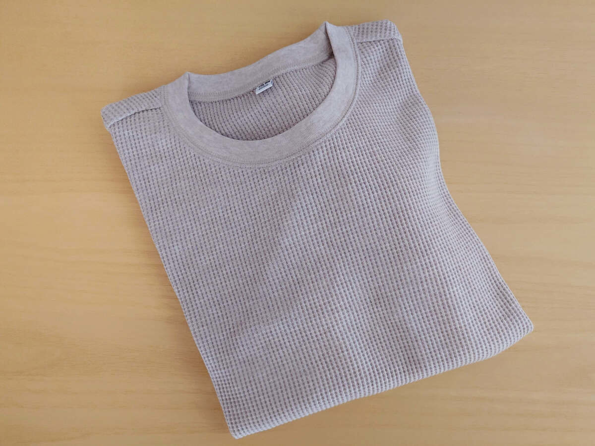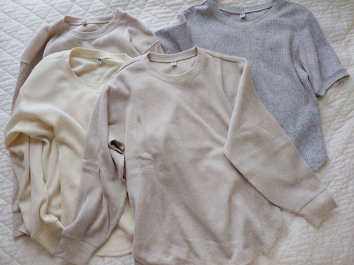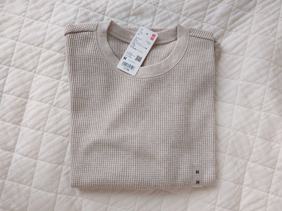 ユニクロのレギュラー商品ですが、我が家でも超レギュラーでエース級の「ワッフルT」。