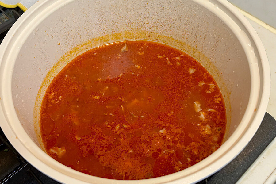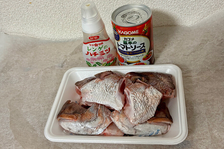 ▽トマトソースを入れただけ。アラについていた身をこそげ落として具にしてみました。