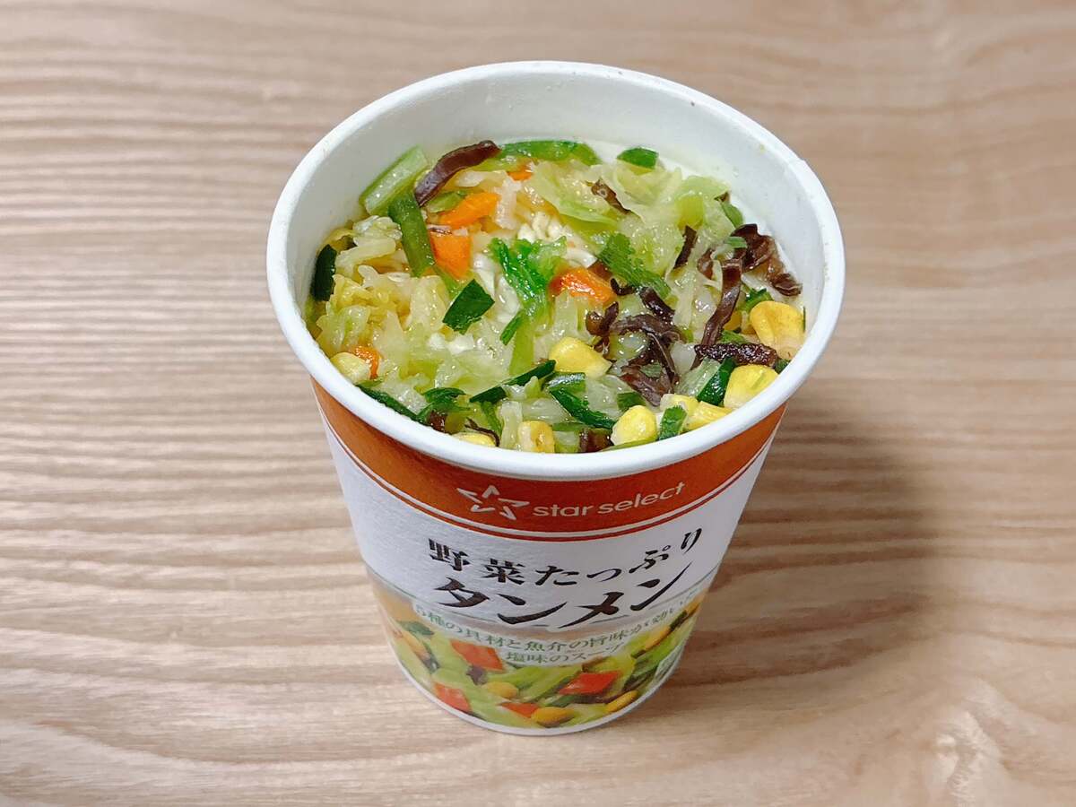 「野菜たっぷりタンメン」は、商品名通りカップ麺にしては野菜が多め。