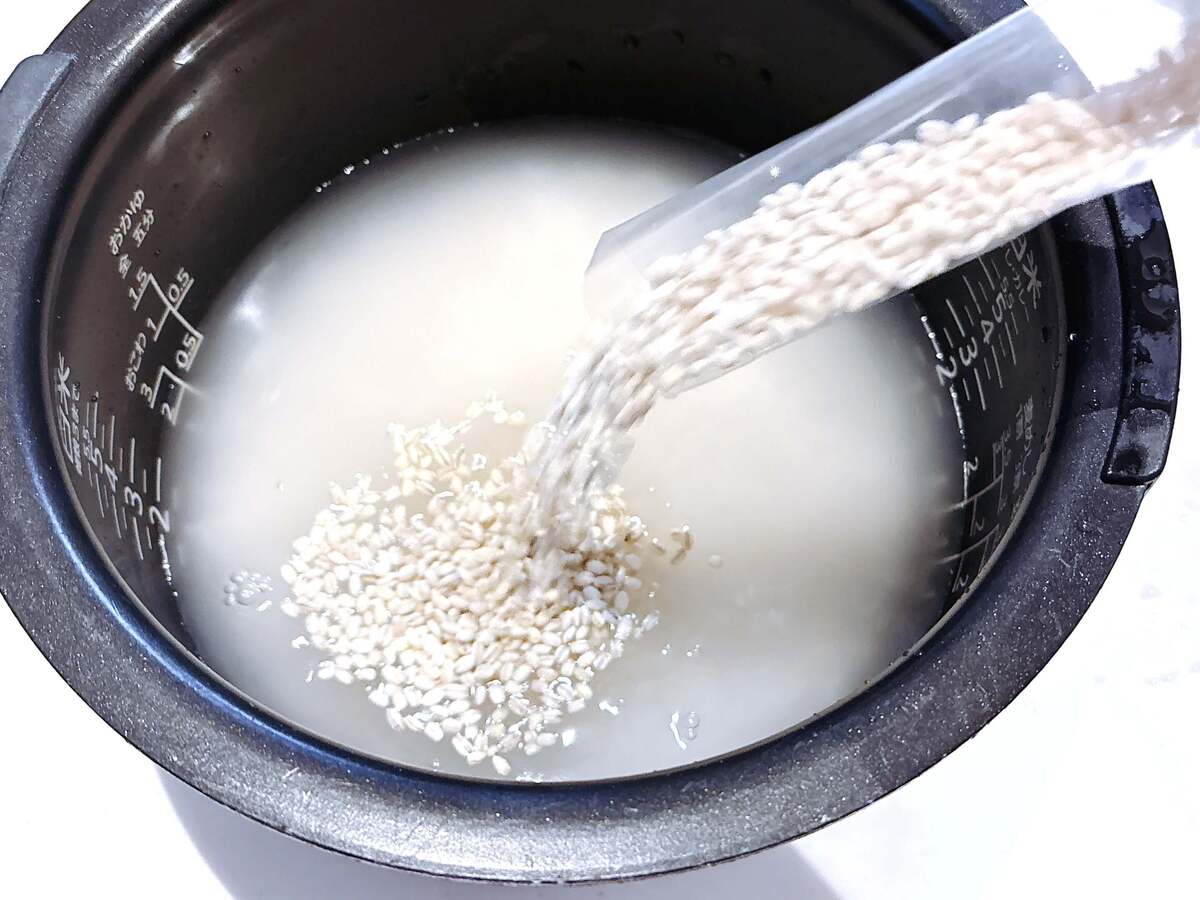 お米1合に対して、もち麦1袋と水100mlを加えるだけです。