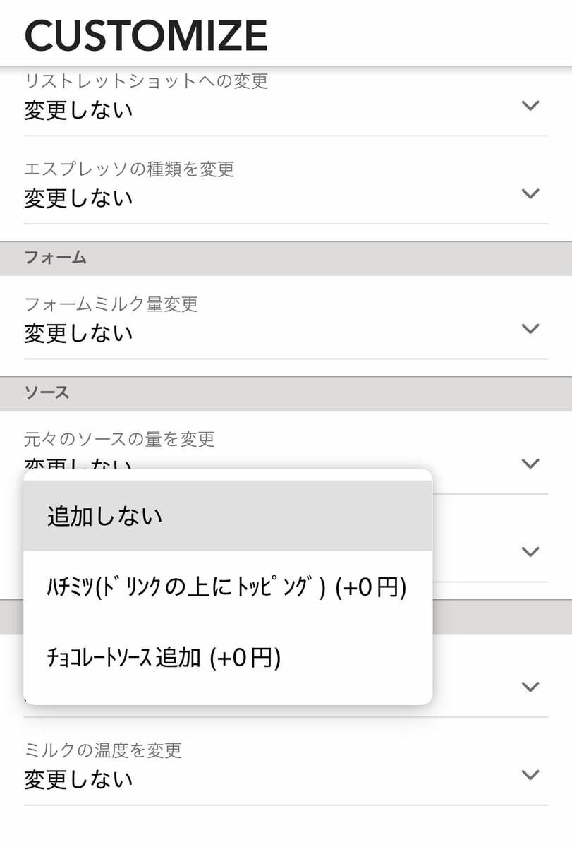 - モカシロップに変更…無料