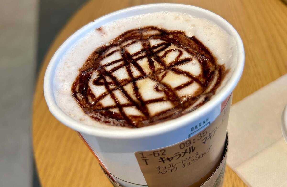 いつものキャラメルマキアートとは違って、フォームにトッピングされているのはチョコレートソース。