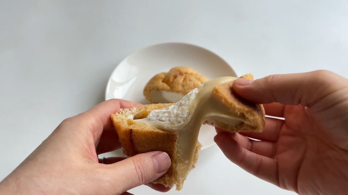 普段のダブルシューもたっぷりクリームが入っていますが、もう手に持っただけで“クリームギッシリなのわかります”というタイプ。