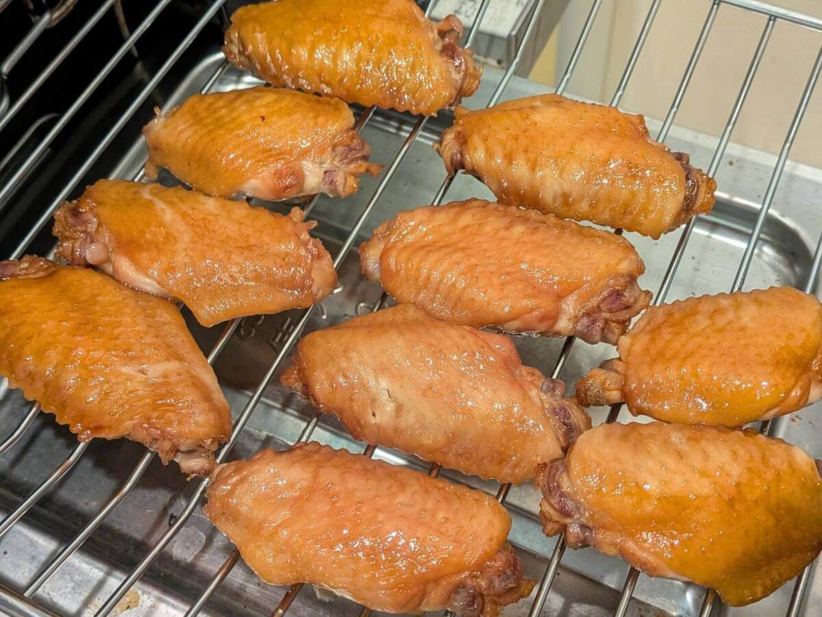 煮てから焼くことで、スッキリ味になるそうで、煮るだけではふかふかだった手羽中が、焼くことによって表面にハリが出てテリが出ました。