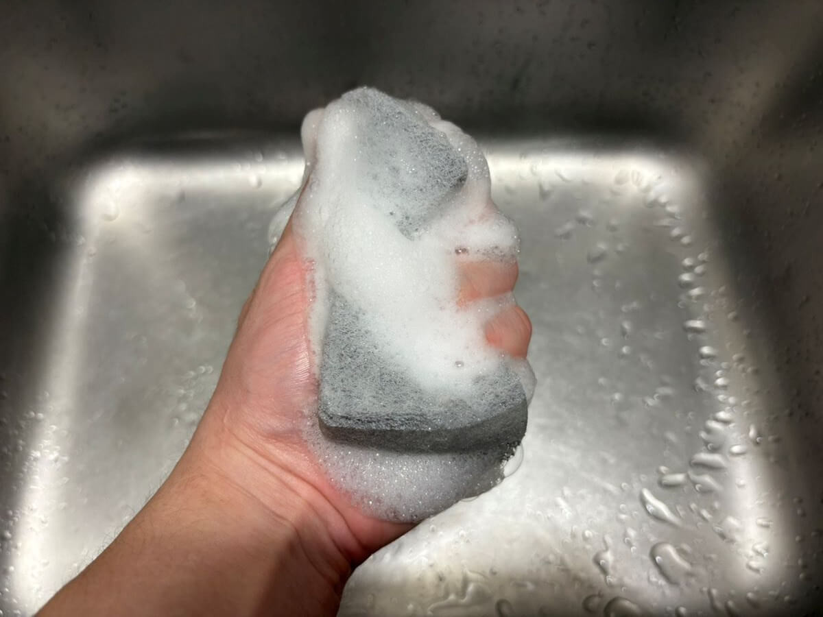 素材もしっかりしており、強く擦ってもつぶれないので洗い物がしやすいです。