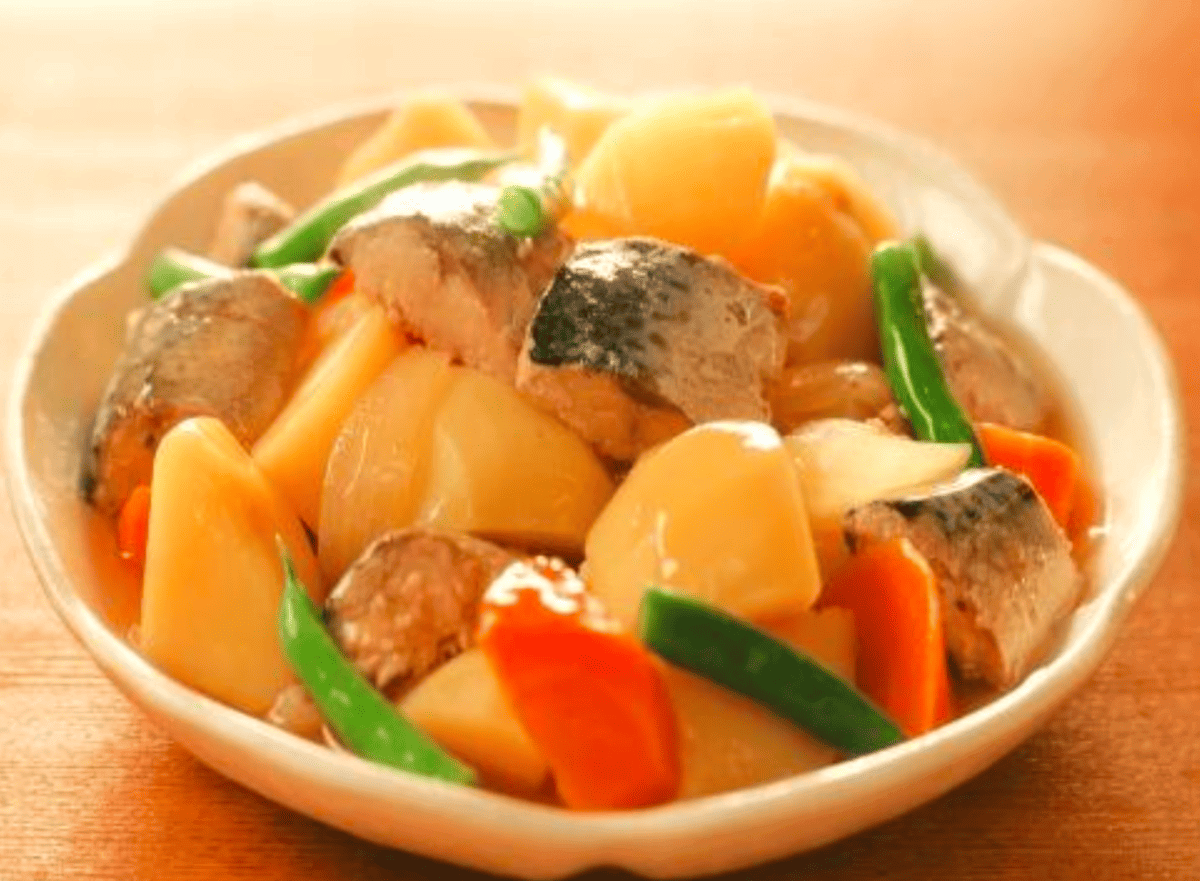 その①:肉じゃがの“肉”を「サバ缶」に置き換え!「さばじゃが」