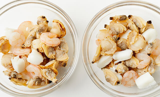 今回は、料理研究家・吉田瑞子さんに、シーフードミックスがプリプリになる「塩水解凍」の方法と、臭みを出さない調理テクニックを教えてもらいました。