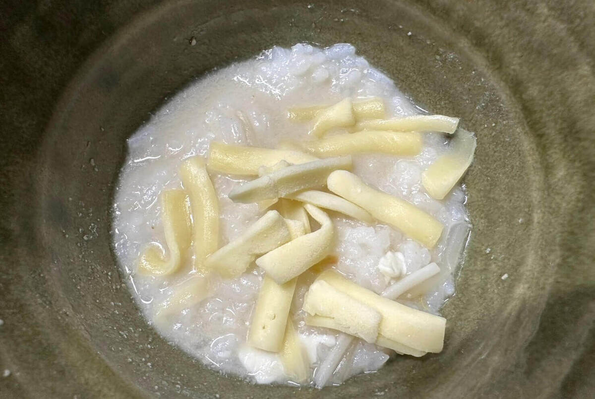 子どもにも評判がよかったのがシメのチーズリゾット風雑炊。