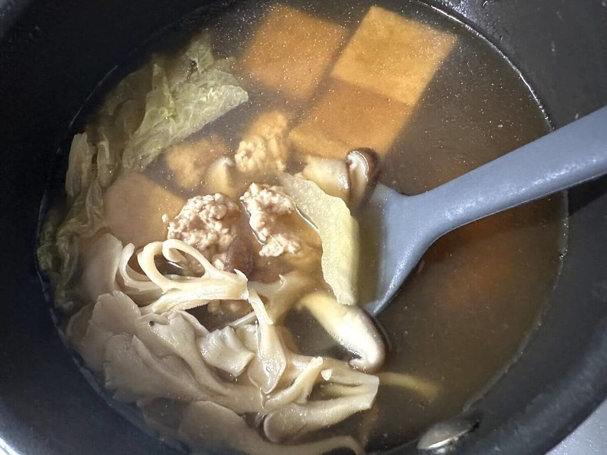 特に「えのき」「豚バラ」「豆腐」がよく合い、一口ごとにスープが絡んで食べ応え抜群。