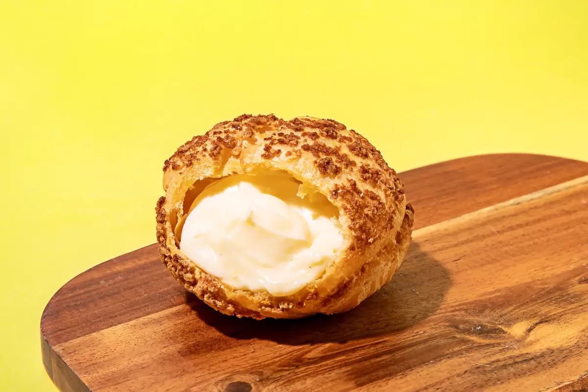 ビアードパパ自慢のサクサクパイシュー生地にカリッとした食感の甘いクッキー生地をトッピング。濃厚な風味が加わったビアードパパもう1つのスタンダードです。