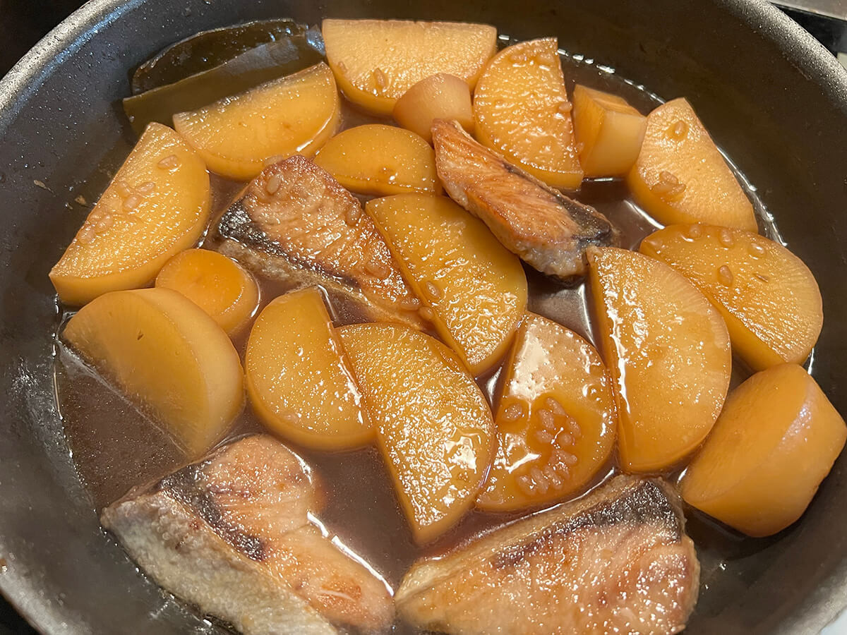 大根にもブリにも時間とともにどんどん煮汁がしみていくので、残ったものを温めていただくのも醍醐味かと。次の日のお昼に温めなおして白いご飯と食べたのですが、本当に最っ高でした!