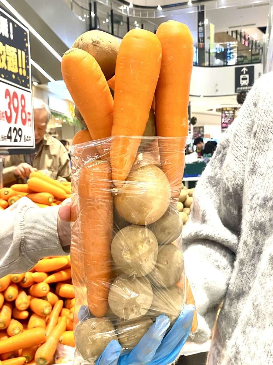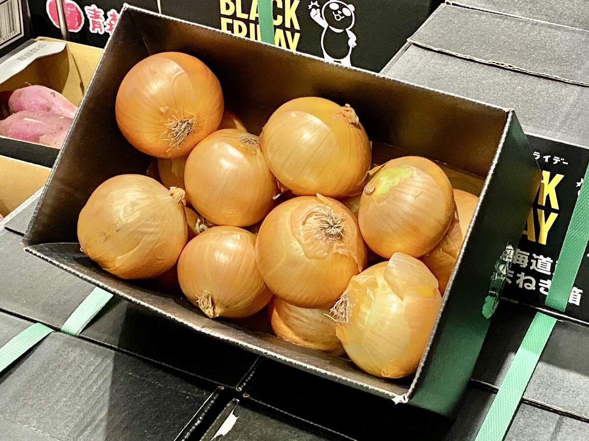 幕張新都心の取材で見つけたのですが、チラシやリリースにも載っていない商品です。玉ねぎだけでなく、じゃがいも、さつまいもも同じく540円で売られていました。