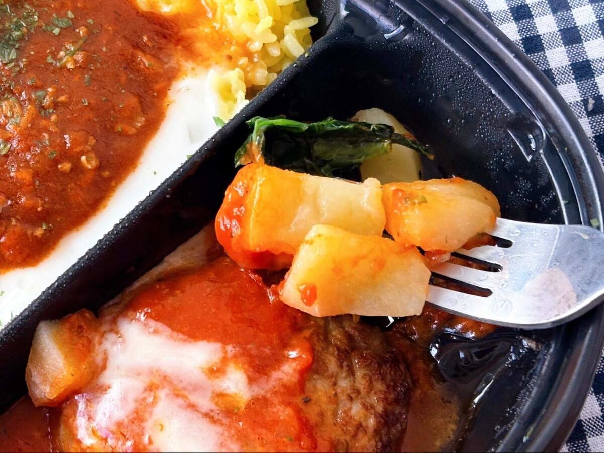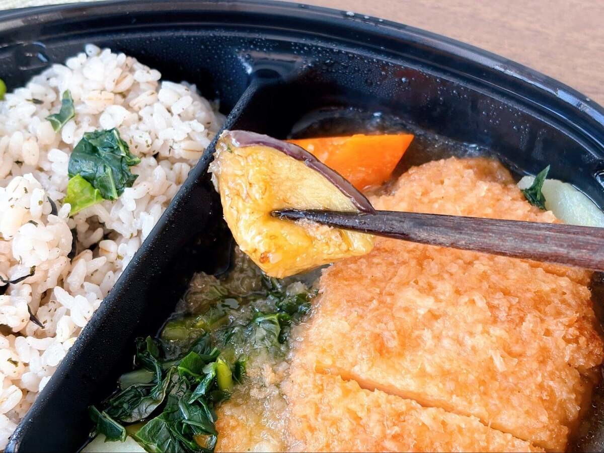 副菜はフライドポテト・にんじん・ケール・なすと、カラフルで見た目も食欲をそそりますよね。特になすは肉厚で、口に入れるとじゅわっと旨みが広がります。