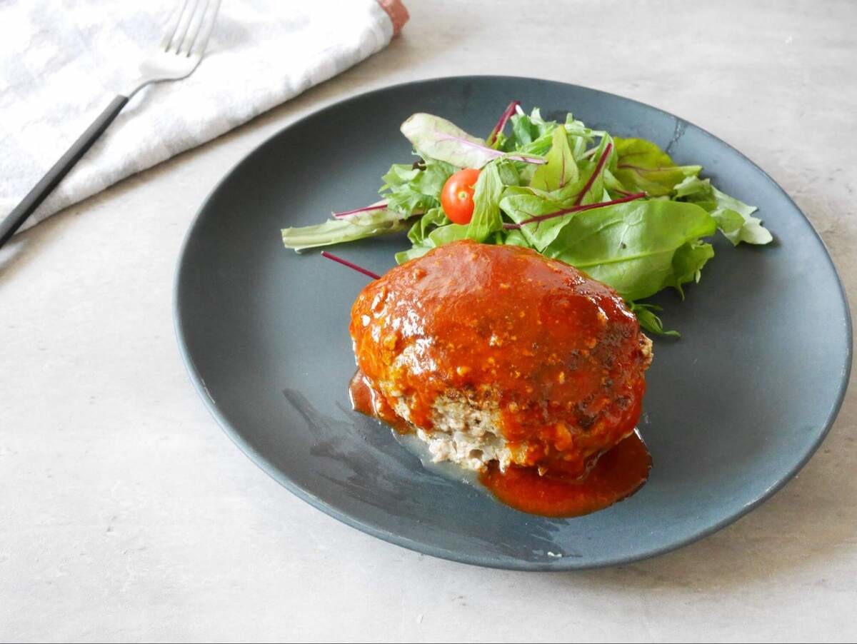 番組のレシピではケチャップやソースなどが材料欄に載っていませんでした。でも、完成写真はどこからどう見ても、ハンバーグに茶色い何かがかかっている……。