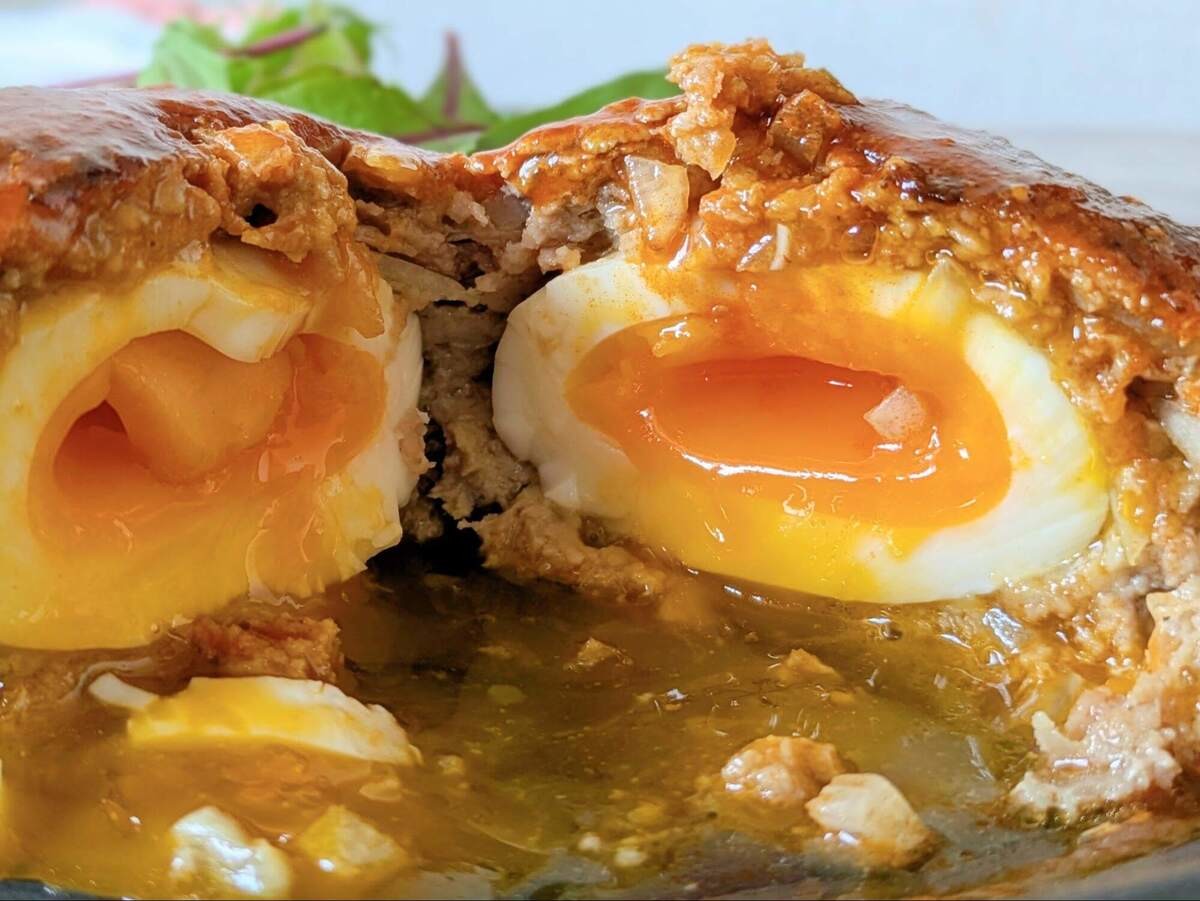 番組内では水卜アナがびっくりされていた、半熟ゆで卵を丸ごと包んだわんぱくなハンバーグ。